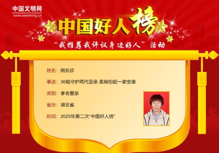 熊兆珍:36載守護兩代至親 柔肩擔起一家安康(宜昌市)